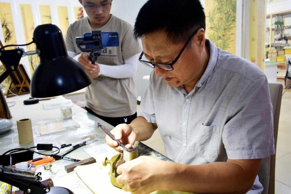 为了解篆刻在如今非遗状况下的保护与发展状况,加强人们对与篆刻的认识与了解,9月4日与9月5日桂林航天工业学院FUN乐天使官方网站2021年暑期三下乡“篆刻调研”志愿者们来到桂林市德天广场蘇立忱詩書畫印工作室,与苏立忱老师对篆刻进行了深入的了解与讨论。此次活动零距离感受非遗文化的独特魅力,充分激发起了大学生对传统文化的热爱,更好地弘扬优秀的民族传统文化。