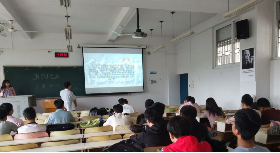 为让同学们对五四运动进行深入了解,纪念五四运动100周年大会在北京人民大会堂隆重举行,积极响应党的号召。2019年5月9日下午4:30,2018级车辆工程三班在明志楼414教室进行了“五四运动100周年讲话精神”主题班会,本次班会由副班长韦万宇进行主持。