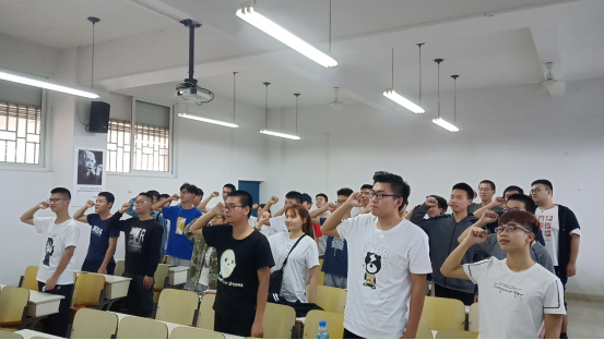 活动中,覃嘉音先给同学介绍五四运动的历史背景、重大事件及其历史意义等重要内容,重温了五四历史回忆,然后组织同学们一起观看“2019.05.02纪念五四运动100周年文艺晚会”。视频结束后,覃嘉音邀请了班上几位同学上台发表对五四精神的理解和看法及应该怎样弘扬五四精神。如黄结霞同学,她认为弘扬五四精神应端正自己的学习态度,向身边的优秀青年看齐,学习邓稼先当年投身西部大漠的奉献精神,还有郭帆“择一事,终一生”的专注品质,努力提升自己。活动最后,覃嘉音也带领同学们重温了入团宣誓誓词。