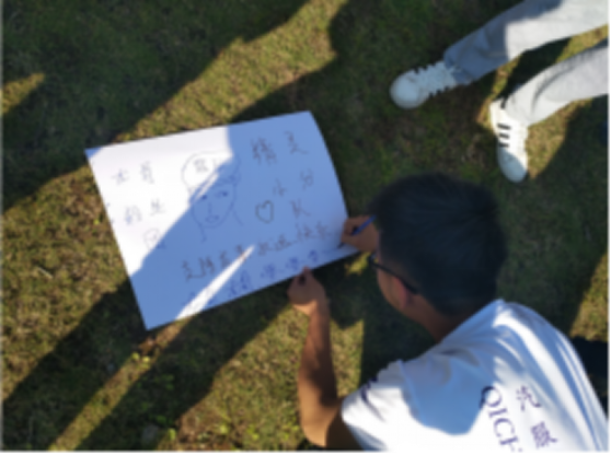 队旗设计比赛结束,由于同学们耗费了太多体力,可能不太适合继续进行接下来的游戏,可爱的负责人们拿出早已备好的牛奶、巧克力和糖果等补充体 力的小事物给同学们!