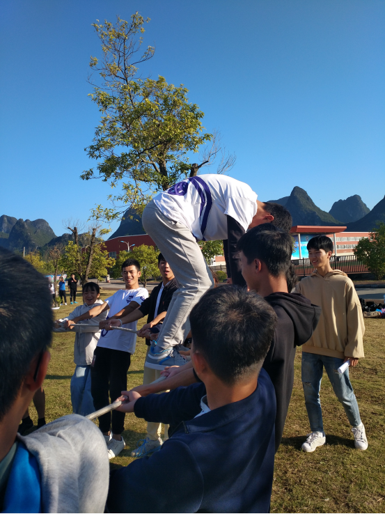 休息告一段落,同学们热情依然高涨。在面对需要足够体力的游戏中,男生们非常贴心地帮助女生,体现了他们身上所具有的风度。这场游戏是挑战人的勇气,也体现班级同学的团结,一旦有同学松手,那挑战的同学可能会摔落。在整场游戏中,每一位同学都有极大的参与感和责任感!