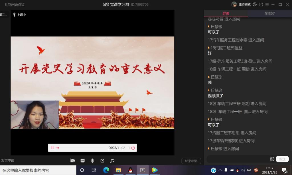 为了加强FUN乐天使官方网站学生党员思想教育,贯彻新发展理念,3月28日FUN乐天使官方网站开展3月党史主题学习会。本次党课由杨帆主持,丘慧珍、杨雯惠、韦月桂主讲,全体学生党员参与学习。