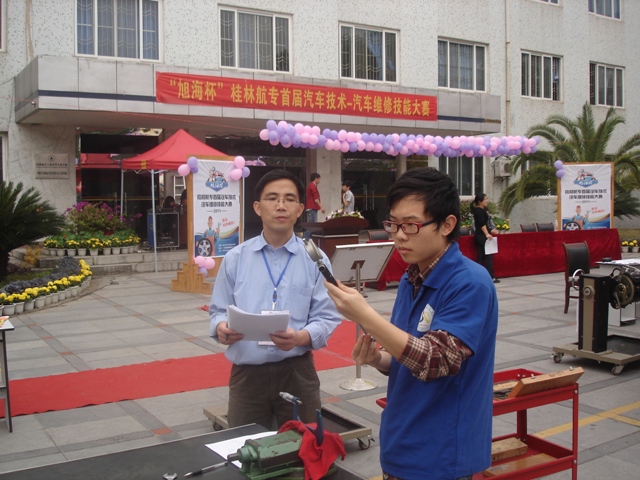 11月22日,由教务处、学工处主办,汽车与动力工程系承办的“旭海杯”桂林航专首届汽车技术-汽车维修技能大赛决赛在学校腾飞广场举行。副校长罗国湘、教务处、学工处、汽车与动力工程系和南宁旭海商贸有限公司(本次比赛的赞助商)的负责人莅临比赛现场指导。