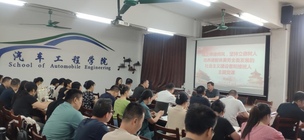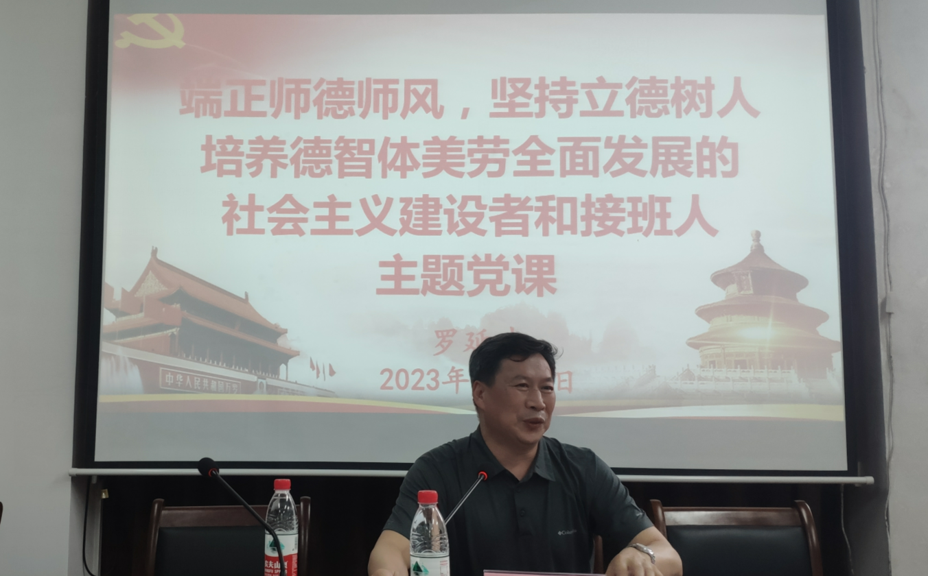 为深入开展学习贯彻习近平新时代中国特色社会主义思想主题教育,6月16日,学校党委副书记罗延忠莅临FUN乐天使官方网站为学院全体党员上了一堂主题为《端正师德师风、坚持立德树人——培养德智体美劳全面发展的社会主义建设者和接班人》的专题党课。