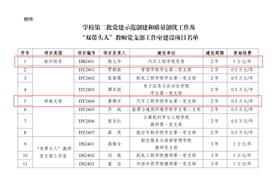 据了解,经组织申报、专家评审,2024 年学校第二批党建示范创建和质量创优工作及“双带头人”教师党支部工作室建设项目共获准立项 11 项,其中“标杆院系”1 项、“样板支部”7 项、“双带头人”教师党支部工作室 3 项。下一步,学院党委将坚持以习近平新时代中国特色社会主义思想为指导,聚焦“为党育人、为国育才”初心使命和立德树人根本任务,结合汽车专业特色,进一步锻造“红色引擎”党建工作品牌,加强基层党组织建设,探索党建工作新路径、创新党建工作新办法,以高质量党建引领学院事业高质量发展。