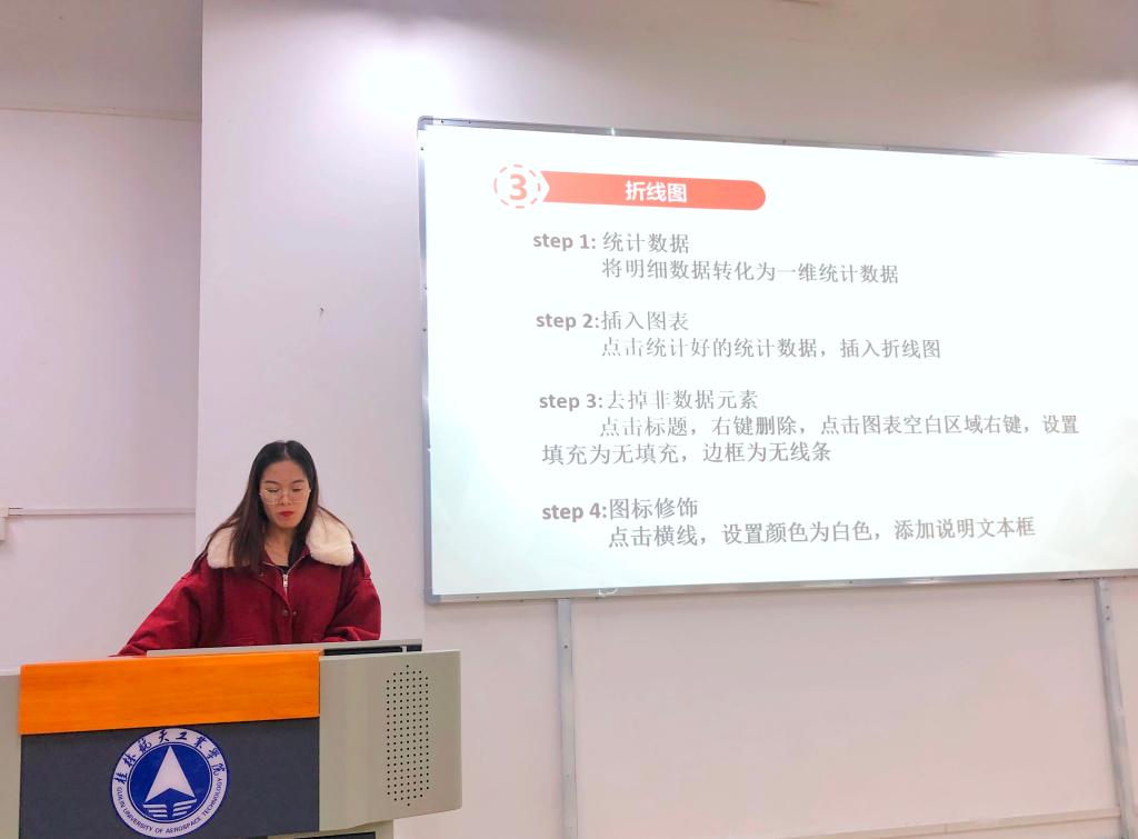 培训伊始,团委学生会成员向同学们强调了Word文档与Excel表格这两类办公软件在工作中的必要性,还简单的介绍了它们的基本功能及主要作用。为让同学们有更加深入的了解,团委学生会成员现场制作了一个简约PPT,同时将自己当初学习的网站、资料、经验与同学们分享,鼓励同学们课后多多练习,精益求精。