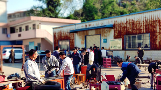 本次的汽车实验室大清理分步进行。第一步是先将实验室内的仪器设备如汽车发动机,汽车车身,轮胎,设备柜等搬到室外,由于这些设备大多都是铁制品,属于重量级型,每搬动一台设备都需要几个人,但是同学们都精力充沛,非常积极的参与。