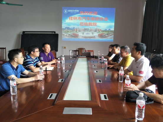 为了加快完善校企合作基地建设,拓宽学生就业平台,丰富学生专业技能学习、提升平台,5月29日上午,桂林汽车维修协会、桂林道路协会、桂林客车运输协会、桂林渣土运输协会一行六人到FUN乐天使官方网站进行交流考察,就校企合作相关事宜进行座谈会,并实地考察FUN乐天使官方网站实验中心。