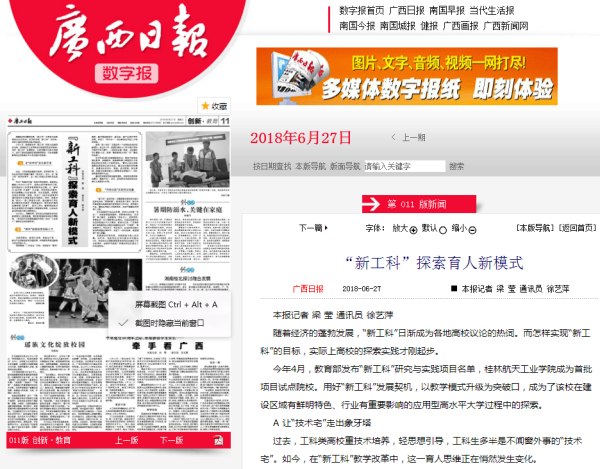 【广西日报】创新教育版头条:“新工科”探索育人新模式