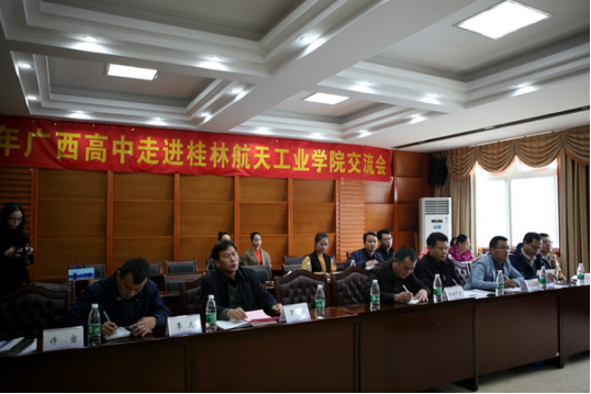 12月8日,“2017年广西优秀高中走进桂林航天工业学院”暨我校首批“优质生源基地”授牌仪式在飞天楼517会议室隆重举行。党委副书记罗延忠出席活动,并向南宁市第八中学、苍梧中学、钟山中学、昭平中学、覃塘高级中学等5所自治区示范性普通高中进行了优质生源基地授牌。活动中,各位高中代表听取了我校关于办学理念、办学特色、办学成果、校园文化等方面的介绍。随后代表们参观了汽车与交通工程学院的特色实验室。