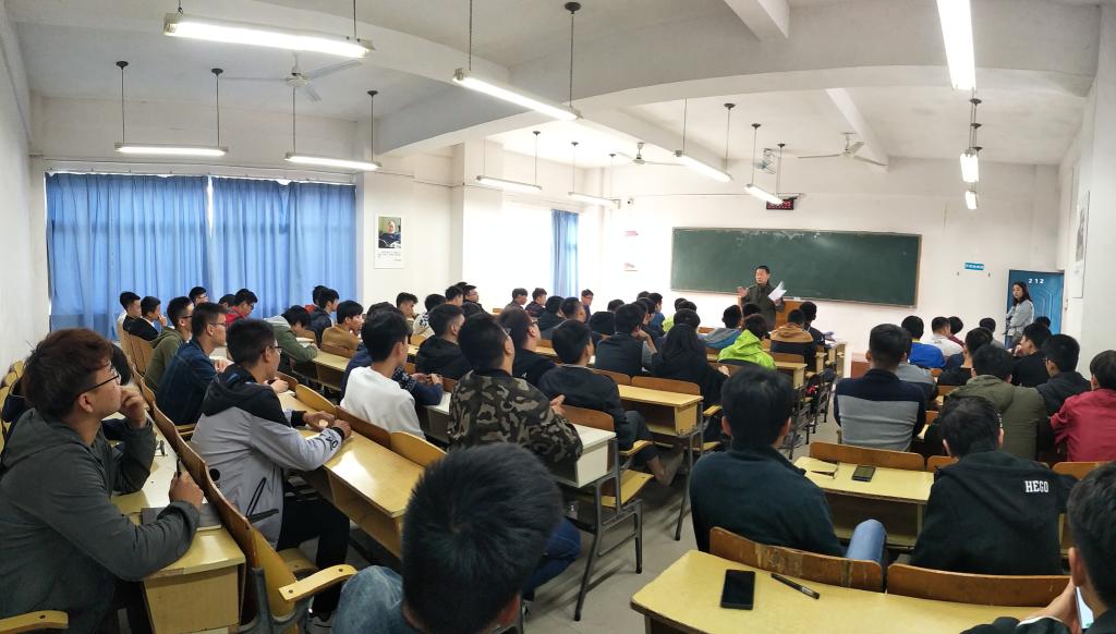 2017年11月7日12:30,汽车与交通工程学院党总支副书记李迪辉书记在明志楼212教室,面向2015级汽车检测与维修技术专业将要去东南汽车集团实习的40名同学,进行了实习前的动员会,马楠老师组织全体学生参会。