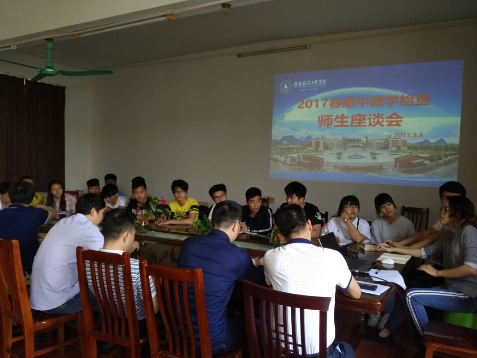 5月5日中午FUN乐天使官方网站在学院会议室召开2017年春季学期期中师生座谈会。学院领导、教研室主任和实验中心主任、教学秘书及22名各班学生代表参加了本次会议。