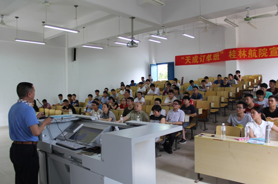 签约仪式举行前,桂林天成车业服务有限责任公司领导在北校区明志楼举行了“天成订单班”组班宣讲会。签约仪式结束后,桂林天成车业服务有限责任公司一行七人参观了汽车与交通工程学院车辆工程训练中心。