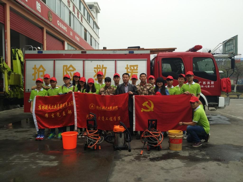 2016年3月5日,汽车与交通工程学院团委学生会、汽车与交通工程学院学生党支部在院李迪辉书记、辅导员蒋春燕老师的带领下来到桂林市七星消防大队,发挥汽车人专长,为子弟兵清洗消防车。