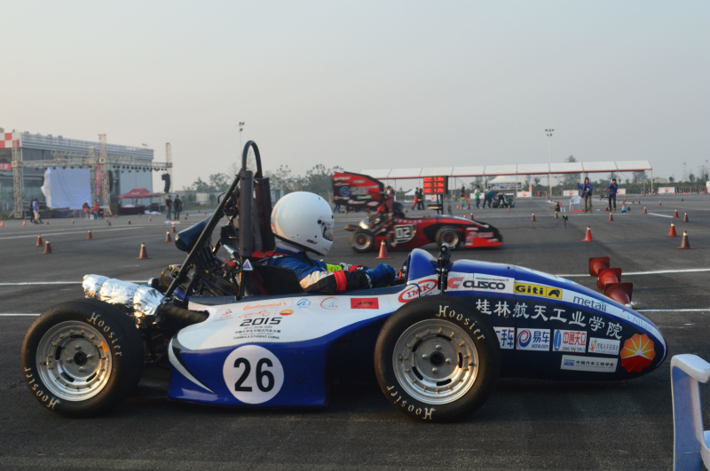 2015年10月15日,大赛进行的第二天,按照规则和总体时间进度安排,通过车检的车队将进行75米直线加速和8字绕环的动态赛。