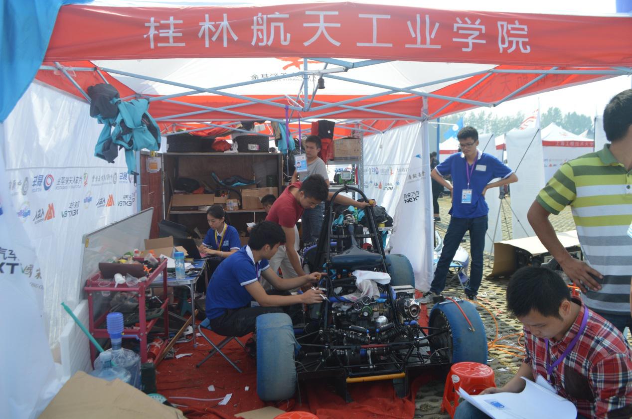 本赛季比赛将持续5天,车队将参与营销报告竞赛、赛车设计竞赛和成本与制造分析竞赛等三个静态项目以及直线加速、8字绕环、高速避障、耐久和效率测试等4个动态项目的角逐。目前车队队员正在紧张有序地进行着赛前赛车的最后调试和报告答辩准备工作,汽车与交通工程学院负责人和车队指导老师亲临现场指导。