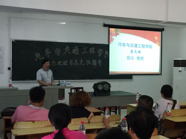 会上,院长李天明教授首先代表学院对新生家长的到来表示欢迎,并对各位家长选择汽车与交通工程学院表示感谢。随后,就学校的发展历史、办学理念、人才培养目标等方面做了讲述,并详细介绍了学院专业设置、教学特色、师资力量、就业升本与考研等情况。对家长提出的较为关心的学习与生活问题做了详细的解答,表示学院既重视学生专业技能的教育,同时也注重学生人文素质培养;在学生管理方面,既强化制度化建设,严格要求学生,也关注引导孩子们日常良好习惯养成教育和自我管理,学院的软硬件都为学生的健康成长成才提供了有力保证,请家长们放心。同时,希望家长与学院多沟通,在关心孩子日常生活学习的同时,进一步督促孩子们注重提高自身的管理与素质提升,共同促进孩子的健康成长。