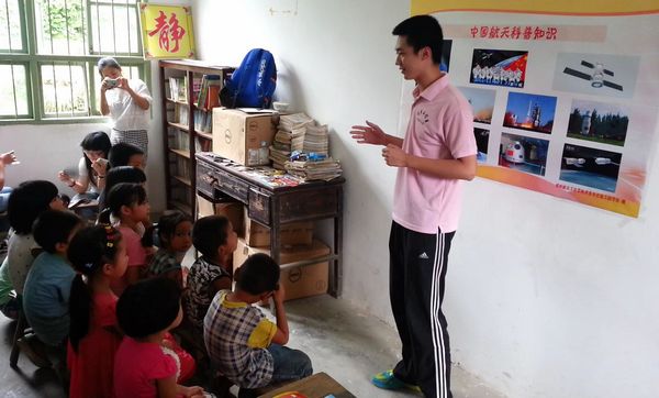 作为来自自治区级爱国主义教育基地的桂航学子们,将他们在学校享受的“航天文化”熏陶与“航天知识”学习成果带到了小学生的课堂,为山里的孩子上了一堂通熟易懂、丰富有趣的“科学课”。党员学生从“梦想”出发,结合航天人物、航天感人故事,激发了孩子们对梦想的描绘;汽车专业学生结合汽车文化知识,讲述了我国汽车科学家们认真钻研的小故事,点燃了孩子们的爱国情怀,坚定了学习的方向。一名孩子认真地举手回答了大哥哥的问题:“我的梦想就是要和哥哥姐姐一样,上大学,学知识,上太空!”朴实的话语,让整个团队不禁为之点赞,一丝感动涌上心头,大家期盼着这份梦想能够最终实现。