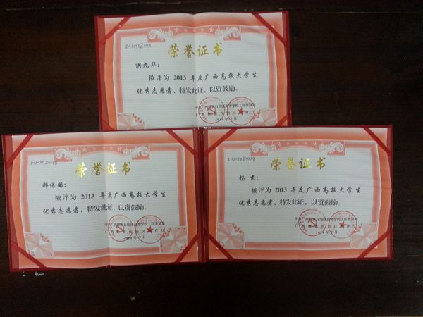 我系3名学生被评为“2013年度广西高校大学生优秀志愿者”称号
