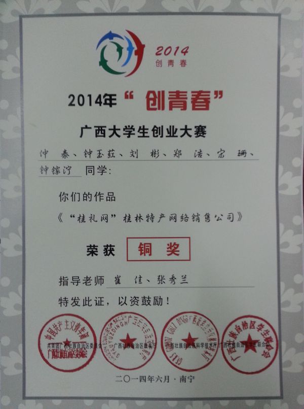 我系在2014年“创青春”广西大学生创业大赛中取得佳绩