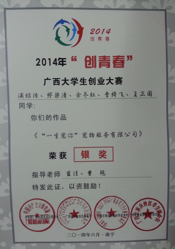 本次“创青春”大赛共有来自广西34所参赛高校的378件作品进入自治区复赛,所有参赛作品都经历了书面评审、现场答辩的环节。我校共有15件作品进入区赛,其中我系《“一生宠你”宠物服务有限公司》项目作品获得广西区银奖,《“桂礼网”桂林特产网络销售公司》项目作品获得广西区铜奖。