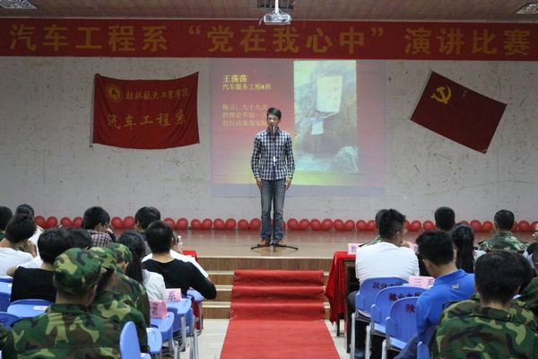 10月13日晚,汽车工程系在招聘大厅成功举办了一年一度的 “党在我心中”主题演讲比赛。系党总支副书记邹爱成老师、辅导员、军训教官及2014级全体新生300余人共同观看了比赛。