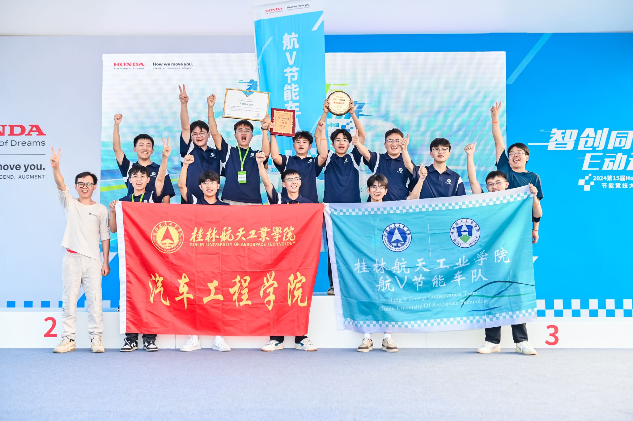 2024年11月18日,由FUN乐天使官方网站郭华礼老师和万运斌老师率领的桂林航天工业学院“航V节能车队”于珠海国际赛车场参加第15届Honda中国节能竞技大赛。本次共有来自于北京理工大学、吉林大学等19支高校组的节能车队,以及来自广汽本田汽车有限公司、东风本田汽车有限公司等16支企业组的节能车队共同参赛。经过11月18日正式比赛日的激烈角逐,我校航V节能车队荣获二等奖。
