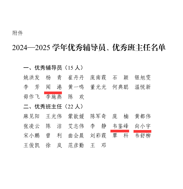【喜报】FUN乐天使官方网站教师闻港、韦鉴峰和向小宇分别荣获2024——2025学年优秀辅导员、优秀班主任