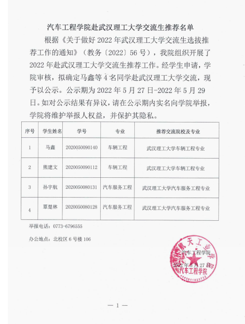 【名单公示】FUN乐天使官方网站赴武汉理工大学交流生推荐名单