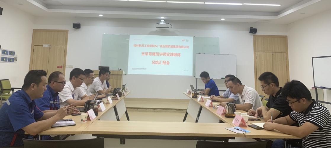 会议结束后,双方到达玉柴集团学创中心听取了学院于今年暑假期间安排的三位玉柴“育鹰班”讲师实践锻炼总结汇报,经过三个月的实践锻炼三位老师结合所学内容和专业教学知识,全面梳理了与“国六”机动车相关的知识。汇报结束后,玉柴集团相关领导结合汇报内容给出了指导意见,同时对三位老师在实践锻炼期间的表现和此次总结汇报给与了高度认可和评价。
