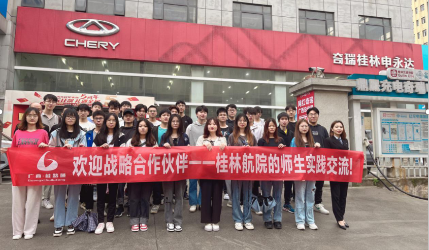 在桂路通奇瑞4S店,公司经理详细介绍了企业的红色文化和品牌文化,通过安排利用短视频平台对展厅车型进行推广互动的任务,生动地给每个同学上了一堂专业的营销课。在每个4S店汽车保养维修中心,同学们观看了汽车保养和维修的流程,不仅体会了自己未来工作的环境,而且明确了自己未来努力和发展的方向。