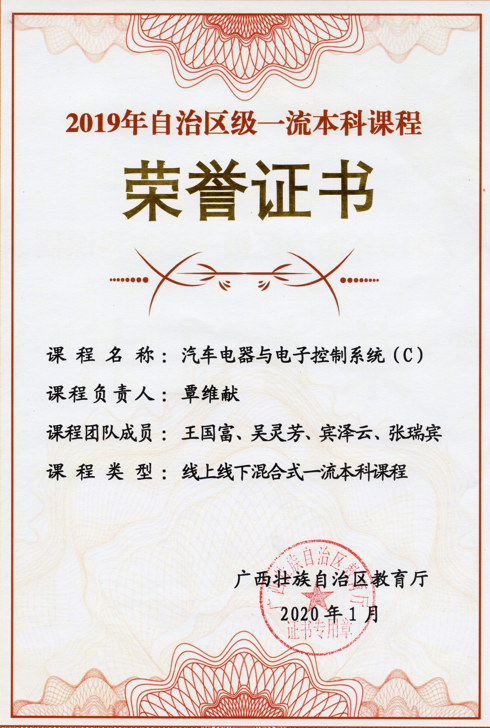 FUN乐天使官方网站汽车电器与电子控制系统课程为自治区级一流本科课程