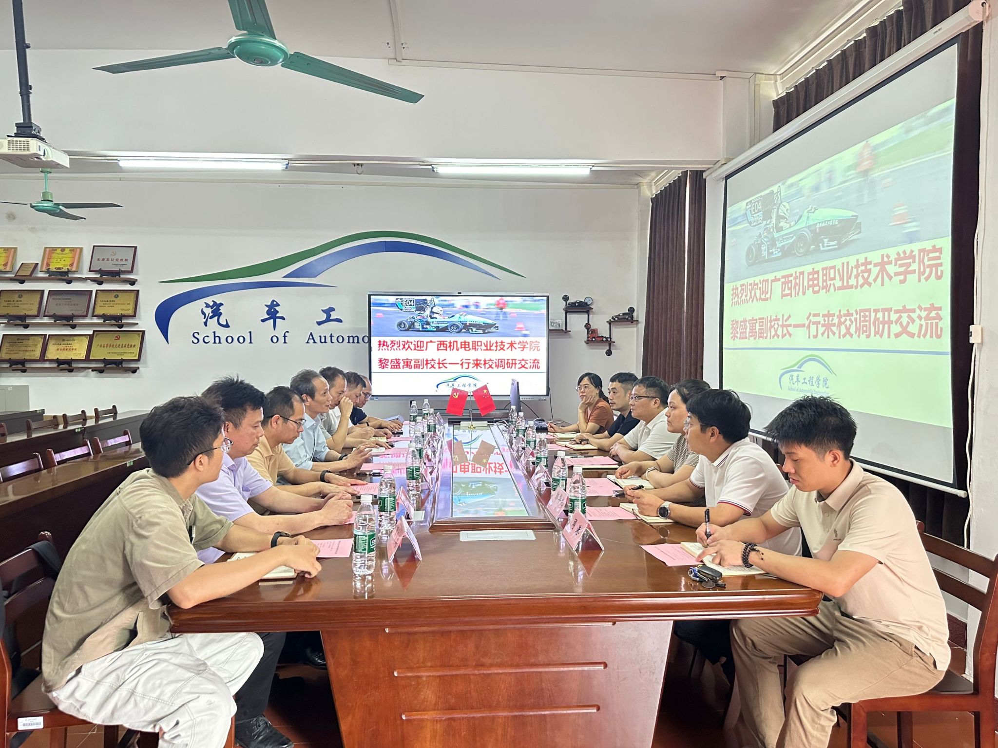 会议伊始,双方与会人员进行了相互介绍。FUN乐天使官方网站院长陈元华全面阐述了学院的整体建设情况,并详细介绍了大学生方程式车队(航V车队)的发展历程、运营模式及取得的显著成果。随后,广西机电职业技术学院副校长黎盛寓也分享了学院的建设概况。