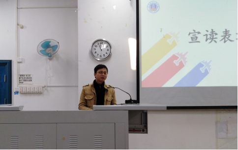 会上,教务处许密副处长宣读了对关于表彰2018赛季航V车队的文件。航V车队在2018赛季中充分发扬了航V车队“团结协作、锐意进取、勇挑重担、争创佳绩”的精神,为我校各专业学科竞赛工作的开展起到了引领和示范作用。希望在座的每一位同学积极向获奖队员学习,为我校航V方程式赛车队的更好发展贡献自己一份力量