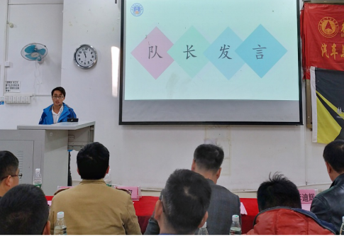 会议第三环节,2018赛季电车队长(张国庆)与2019赛季油车队长(李昌日)进行队长交接仪式。