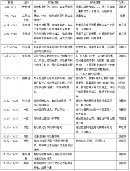 在队员的理论学习上,其他车队在理论学习上要比我们做得好。像同济大学、湖北汽院的队员在给我们解答疑问的时候总能够有理论知识来给支撑他们的观点,而我们只停留在了表面上。而且其他车队在设计的时候有各种实验来验证自己的设计,而我们却没有。加强自身的理论学习和实验论证尤为的重要。