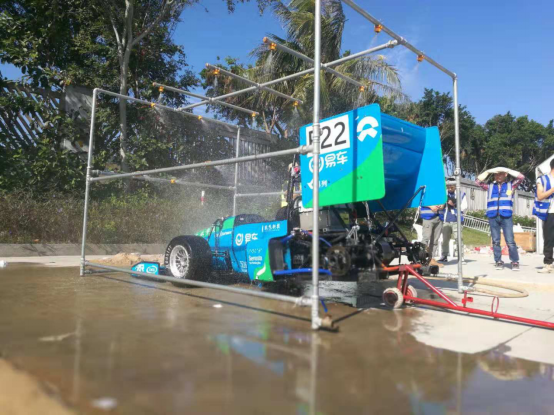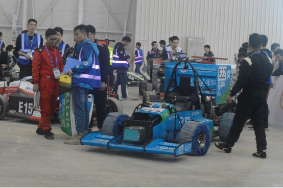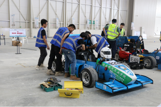 在正式上跑道跑起来之前,赛车需要经过重重检查。赛车首先来到“车手逃生”,接下来是底盘检查,电池箱检查,整车电检环节,确保车辆符合各项规则要求的安全指标和国际通用规范。
