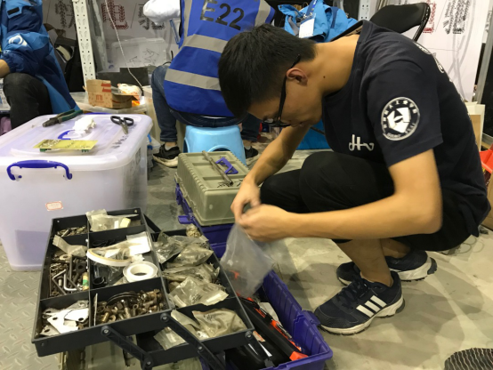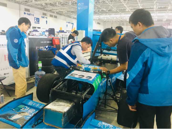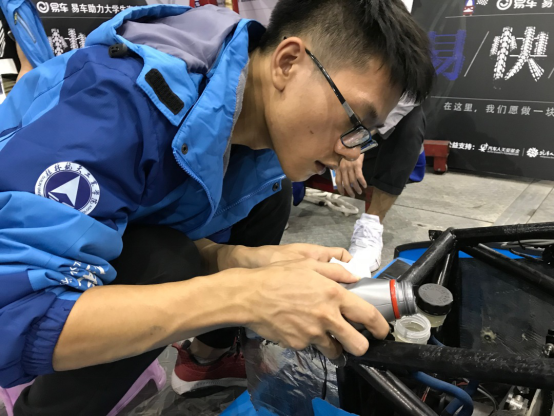 在一天的相关比赛项目结束后,我们的队员会对赛车进行调试。