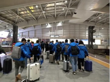 11:55,在梁毅老师的带队下,第一批参赛人员(12人)出发啦!在这一刻,我们将奔赴梦的那方,去迎接一场青春的盛会!