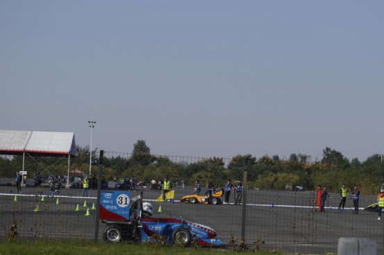 很可惜,在八字绕环时车子不太稳,进动态练习区时车子都起飞了,导致赛车手没敢加油门。但是航V-4号,你不是一个人在战斗,你的背后,有我们航V人为你加油鼓劲,一起和你并肩作战。