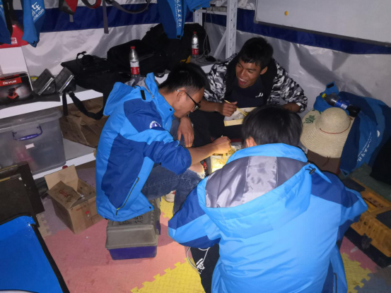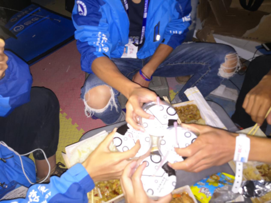 P房暂时没电,只能打着手电筒一起吃饭,吃饭的时候大家一起说说笑笑,一个储物箱也能当饭桌。很幸运遇到你们——一帮为梦想坚持不懈的兄弟们。