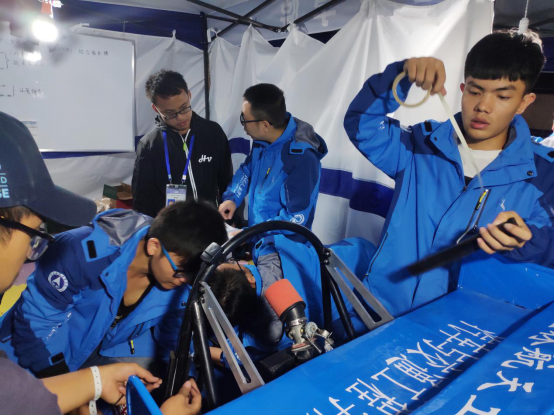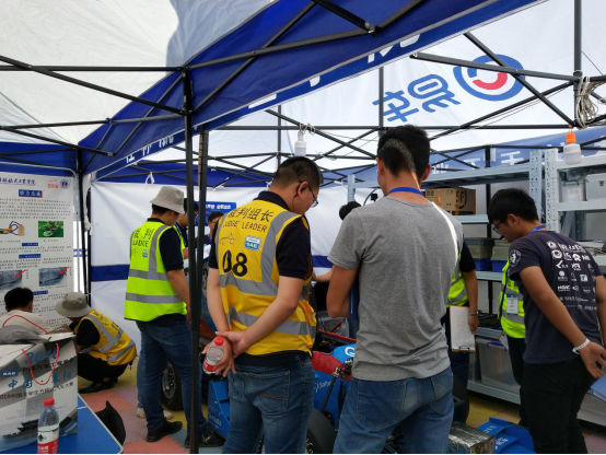 为了能以更好的状态去迎接大赛,各组在车检前再次反复核检规则。在进行模拟车检的时候发现车子不合理地方以及与规则干涉,队员们努力检查排修,在指导老师的耐心指导下,及时解决问题迎接车检。