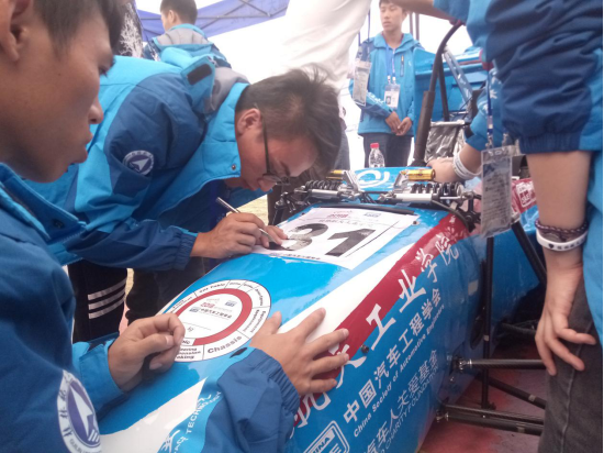 V-4号贴上车号和车检表,只有车检成功,参赛车队才能接下来的比赛。(当车检表被贴满时,就意味着车检成功)