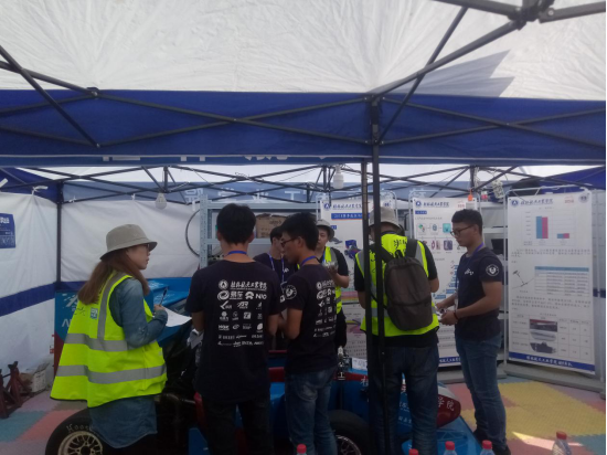 在车检进行的同时,我们的营销组也完成三项静态报告中的营销报告。进行营销报告项目评比的目的是评估车队建立和展示综合商业项目的能力。在比赛之前,营销组的队员做了无数次的模拟练习,在今年营销报告的商业模式思路比较清晰,队员们还做了市场实地调查,使得营销报告说服力有所增加,PPT模板也做了改进,形成了一个商业化、简约的风格。往年,裁判关注的问题点都是:如何盈利,从哪里寻求消费者,市场是否有需求。在今年,我们的营销组在这几个方面有所进步,但是在表述方面还是没有达到预期的效果。辛苦啦,我们营销组的小伙伴们。