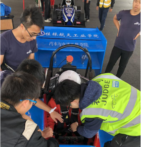 10日,我们主要进行了三项静态报告和车检。三项静态报告包括:营销报告、设计报告、成本报告;车检包括车手逃生、车轮外观、称重、侧倾、制动......至10日,我们车队完成了第一检,还剩下侧倾、制动、噪音未检。