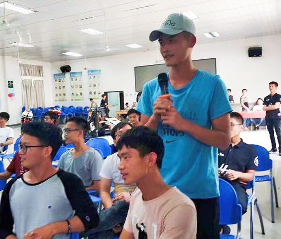 此次航V车队首届赛车展览会上设计了有奖竞答、参观设计室、车间以及集赞前十名同学可进行赛车试驾体验的环节。下午14:30赛车展览会开始,由我们的车队指导老师郭华礼老师上台发言,希望通过举办此次车展,让更多同学能够了解到我们航V车队,能够了解到我们中国大学生方程式系列大赛。