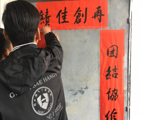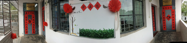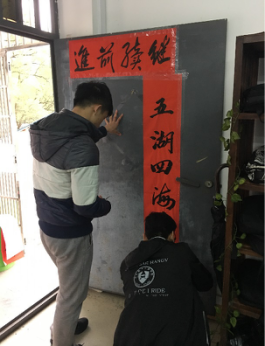一早,队员们便开始“张灯结彩”啦!拿出早已准备好的春联、剪纸装点设计室,好不热闹!
