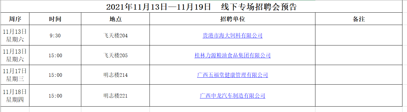 【招聘信息】2021年11月13日—11月19日线下专场招聘会预告