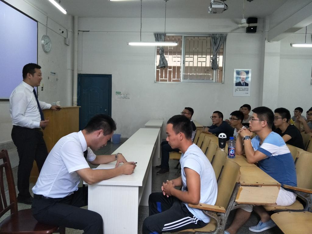 2017年9月26日14:30,在致远楼201教室,汽车与交通工程学院2014级汽车服务工程与车辆工程专业的全体毕业班学生迎来了属于他们的第一场专场招聘会。举办招聘宣讲会的是广汽传祺汽车公司的戴总和王经理。