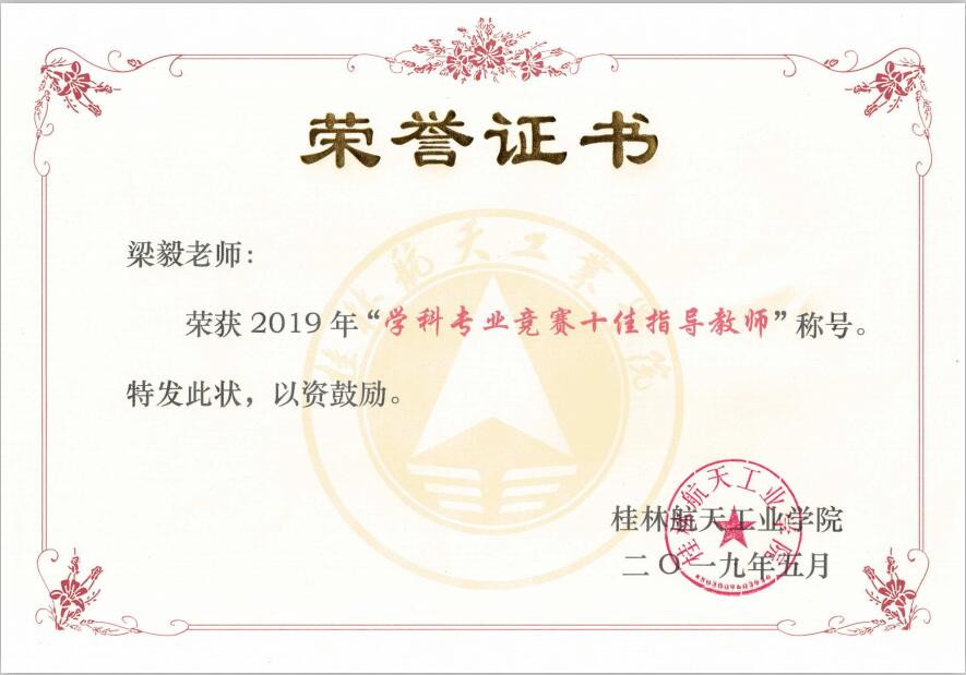 FUN乐天使官方网站教师梁毅荣获2019年“学科专业竞赛十佳指导教师”称号